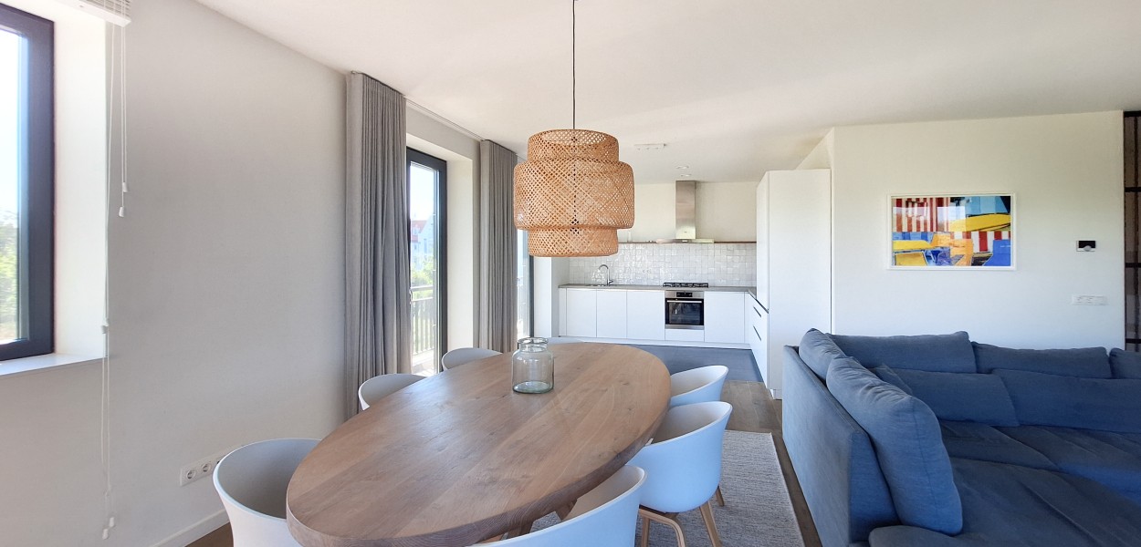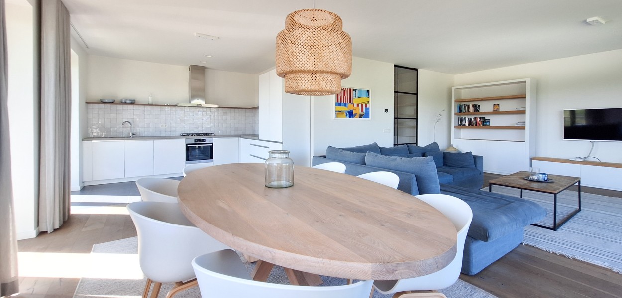 Die Lage der Wohnung liegt wirklich mitten in der Natur und Sie genießen sofort das wunderbar entspannende Gefühl. Das Wohnzimmer ist dank der großen Fenster im Norden und Osten wunderbar hell und überblickt die schönen Dünen von Cadzand. Es gibt einen geräumigen Sitzbereich mit einem bequemen Ecksofa, wo Sie fernsehen oder leise ein Buch lesen können. Der stilvolle ovale Esstisch bietet ausreichend Platz für ein gemütliches gemeinsames Essen oder ein Gesellschaftsspiel. Die offene Küche komplett ausgestattet: die Küche verfügt unter anderem über eine Nespressomaschine, Gasherd mit 5 Brennern, einen praktischen Backofen, Kühlschrank, Gefrierschrank mit 3 Schubladen und eine Spülmaschine.