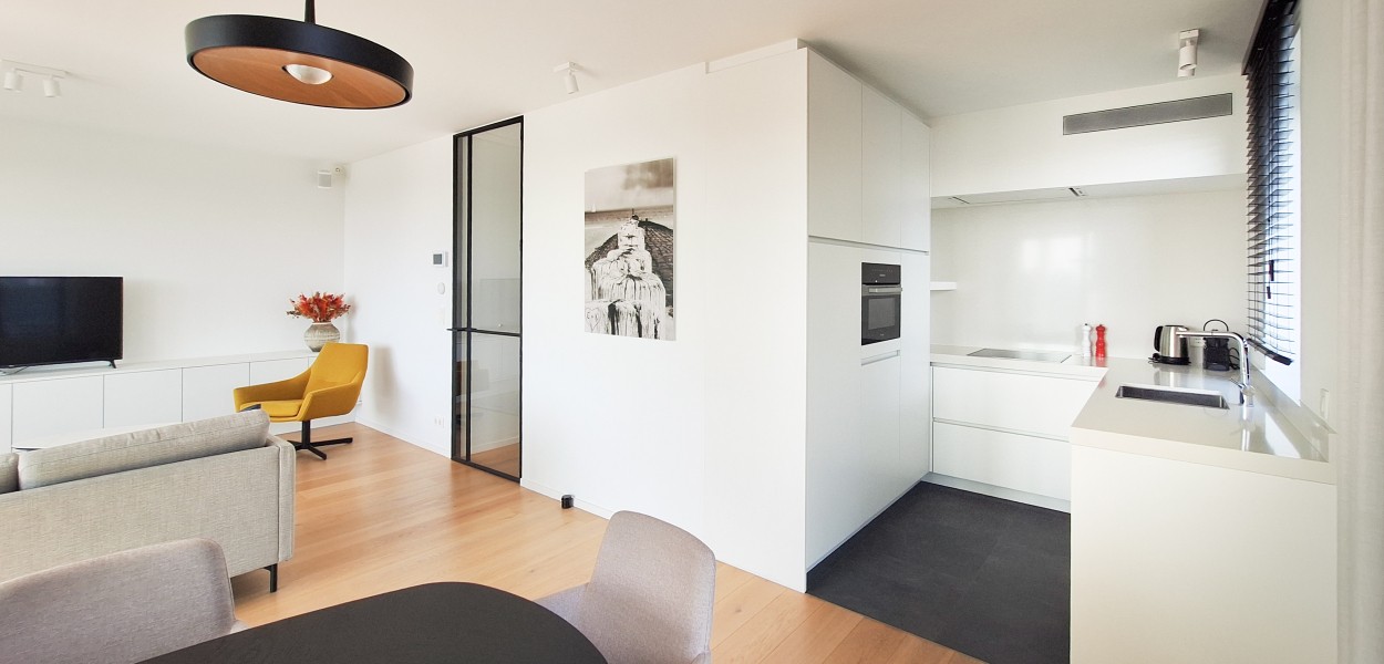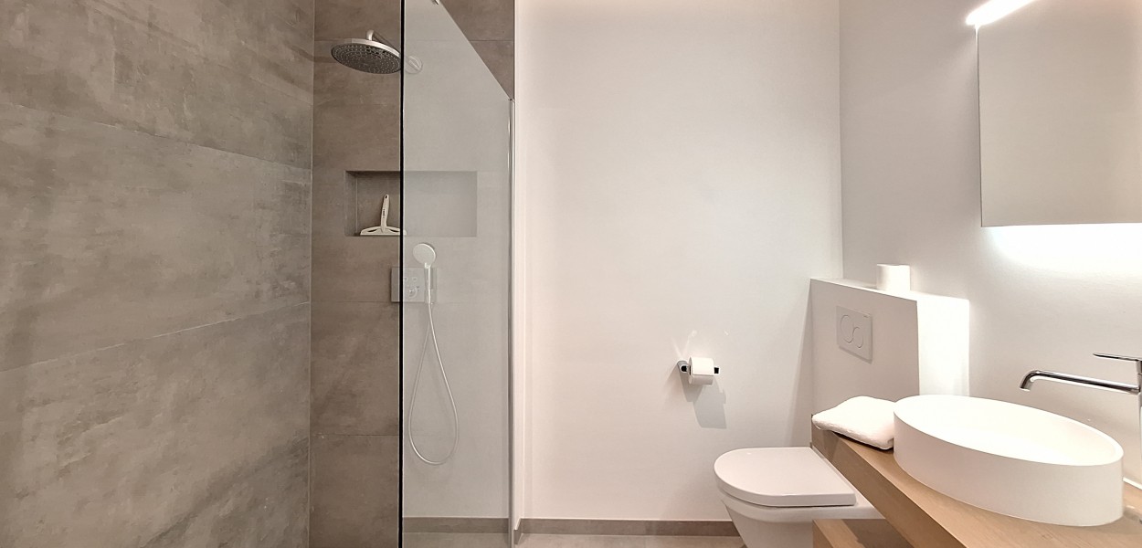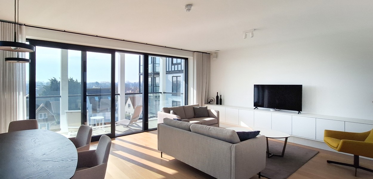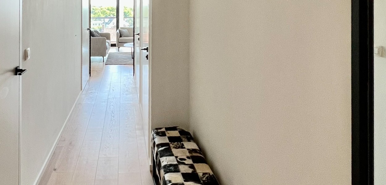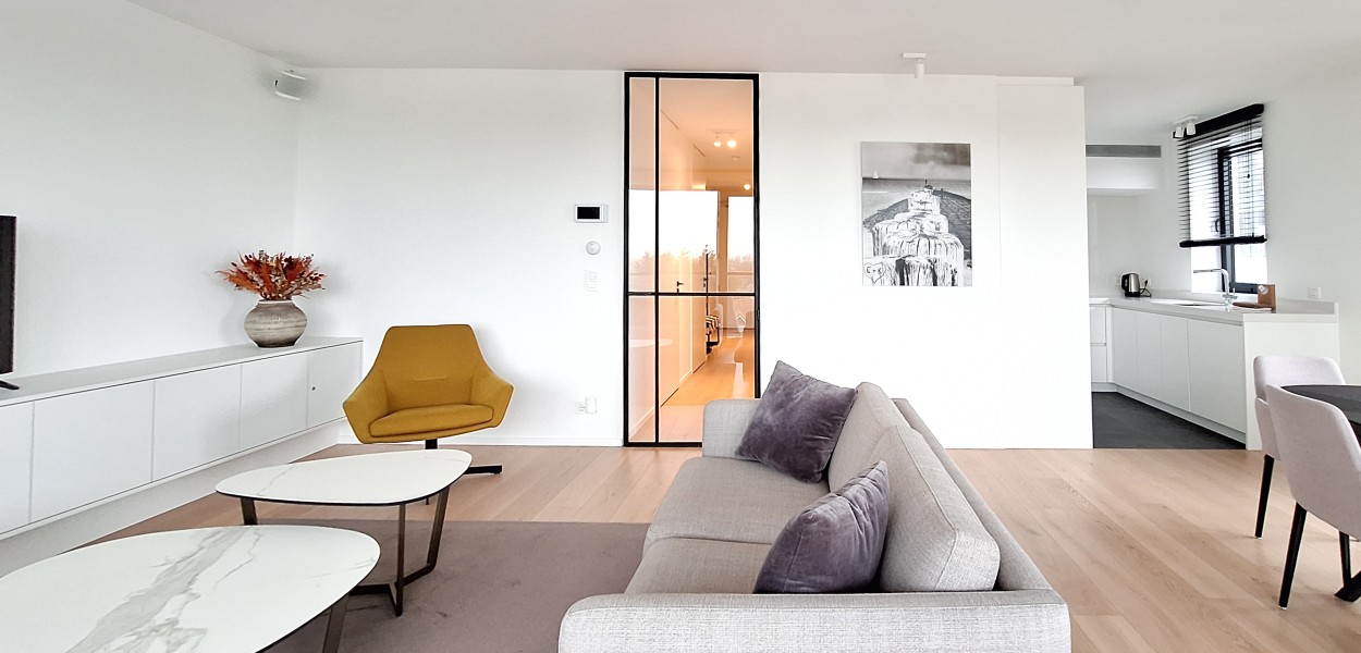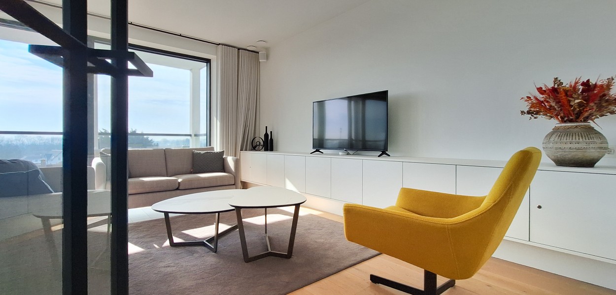Der Wohnbereich besteht aus einem angenehm hellen Wohnzimmer, einer praktischen Küche und einem gemütlichen Essbereich, von dem Sie sowohl vom Haus als auch vom Balkon aus einen fantastischen Blick über das südliche Hinterland genießen. Dank dieser Lage können Sie fast den ganzen Tag die Sonne genießen. Das Wohnzimmer verfügt über eine gemütliche Sitzecke mit Fernseher und Schiebetüren, die sich zum Balkon öffnen. Hier können Sie auch das Sonos-Musiksystem nutzen.Zurück im Inneren finden Sie einen Essbereich mit einem großzügigen Esstisch mit 4 Stühlen, der den Wohnbereich bequem mit der offenen Küche verbindet. Die Küche ist mit einer Nespresso-Maschine, Kombi-Mikrowelle, einem Kühlschrank mit Gefrierfach und einem Geschirrspüler ausgestattet. Sie kochen auf Induktion und verfügen über ein äußerst komplettes Inventarpaket.